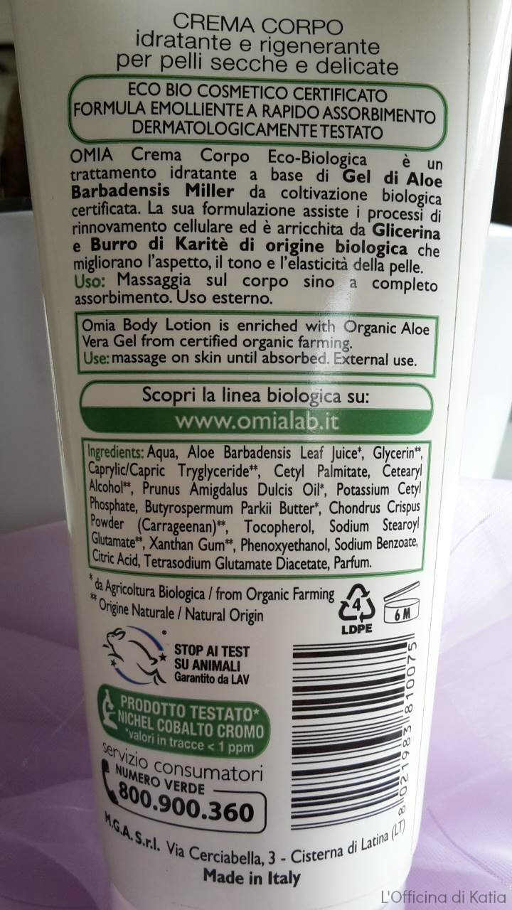 Prenderci cura della nostra pelle non vuol dire farlo in maniera approssimativa perchè ciò può andare a peggiorarne l’aspetto. Dobbiamo avvalerci di prodotti che conferiscano realmente idratazione e che non occludano i pori, come fanno quelli pieni zeppi di petrolati. A tal proposito desidero parlare di una crema corpo a base di aloe vera che ho utilizzato più volte nei mesi precedenti e che mi ha lasciato un buon ricordo. Un cosmetico marchiato Omia, con certificazione ICEA e crueltyfree dal prezzo molto invitante. Questo brand sicuramente lo avrete visto in giro, padroneggia ormai sugli scaffali di diversi supermercati e profumerie. La cosa bella è che spesso offre sconti convenienti tutto l’anno perchè si può essere belli naturalmente anche a costi contenuti. E’ vero, molte volte “economico” non va di pari passo con “efficace” ma in questo caso la situazione è diversa. Ve lo dice una ragazza che ha una pelle molto delicata e sensibile! Continuate nella lettura dell’articolo per saperne di più.