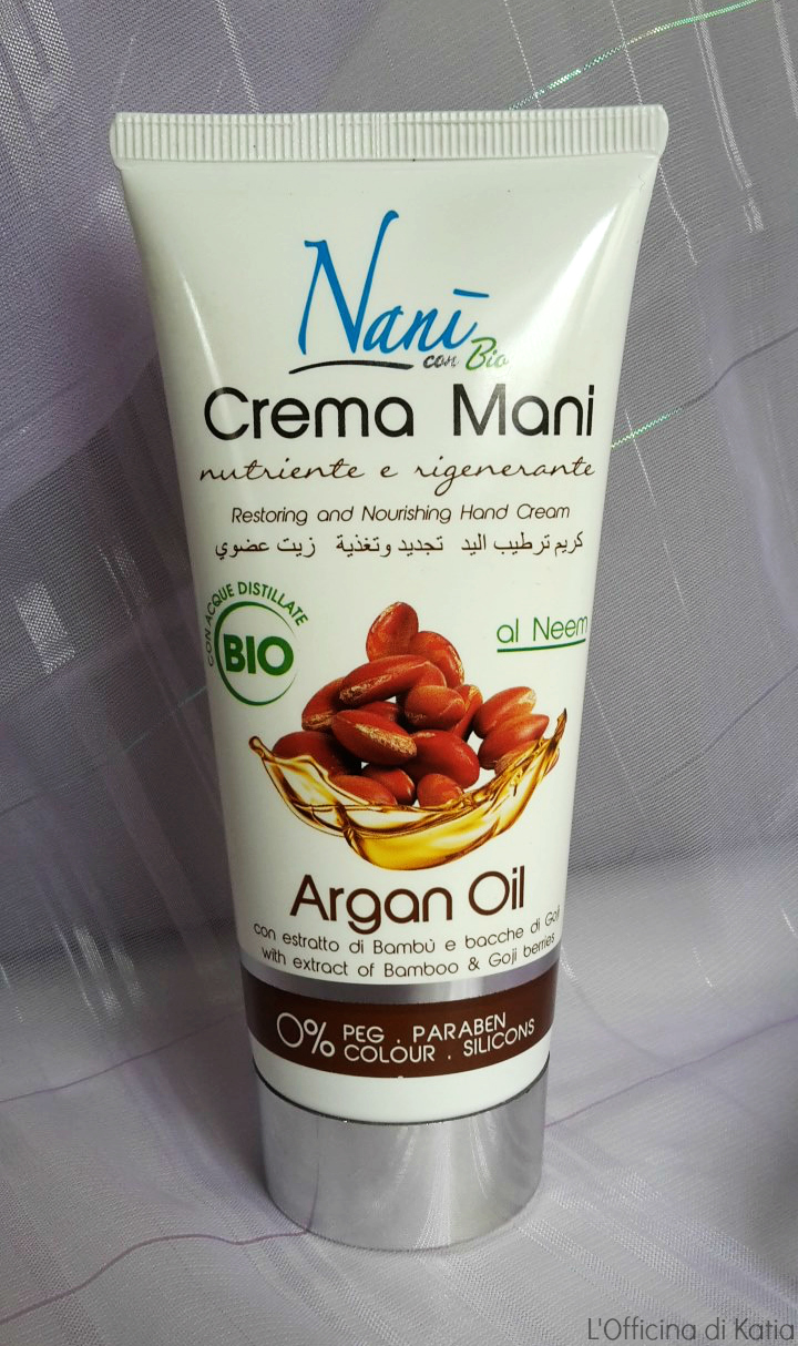 Buongiorno amici! Dicembre e ormai alle porte e col giungere del freddo è bene correte ai ripari idratando bene alcune zone del corpo. Oggi voglio dedicare in particolare la mia attenzione alla cura delle mani proponendovi la recensione di una crema all’olio di Argan dell’azienda Nanì con Bio. E’ un brand di cui non ho mai sentito parlare e che ho scovato presso Acqua&Sapone. La prima cosa che mi ha colpito è stato l’inci contenente anche l’olio di Neem e gli estratti di Bambù e bacche di Goji.