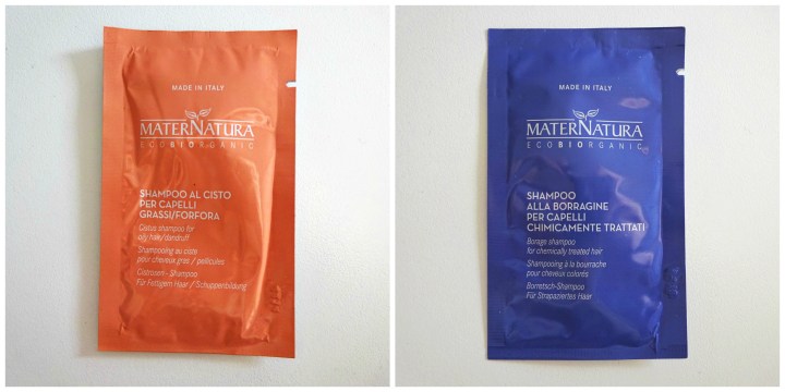 Questa mattina ritorniamo a parlare di “detersione dei capelli” in compagnia di due campioncini firmati Maternatura, ricevuti tempo fa tramite un ordine online. È la prima volta che ho utilizzato gli shampoo di questo brand italiano e sono stata molto felice di portarli con me in viaggio e testarli. Entrambi mi hanno incuriosita per la loro ricchezza di ingredienti nell’INCI. Hanno una formulazione ecobio certificata ICEA, testata al nickel e sono formulati nel rispetto della cute, anche la più sensibile. 🙂