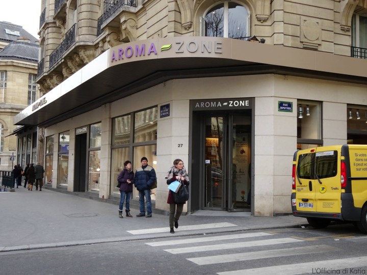 Voglio condividere con voi una piacevole esperienza avvenuta a Parigi un po’ di tempo fa, immersa tra profumi, fiori e negozi che rivendono prodotti naturali. Essendo un racconto abbastanza lungo ho intenzione di suddividerlo in due articoli dedicati a due luoghi differenti che mi hanno lasciato un bel ricordo. Iniziamo con Aroma-Zone, vi dice nulla il nome? I veterani, come me, del bio e dell’autoproduzione lo conosceranno molto bene. In Rue de l’Ecole de Médicine 25, c’è uno spazio di 500 mq che racchiude di tutto e di più: materie prime di vario genere, oli essenziali, erbe tintorie, cosmetici già pronti e chi ne ha più ne metta! Era da una vita che desideravo mettere piede in questo “tempio del benessere” e finalmente ci sono riuscita. Appena varcato l’ingresso mi è sembrato di entrare in una dimensione a parte, tra scaffali stracolmi di flaconi e fragranze che cullavano l’olfatto. Ho consultato un sacco di prodotti prendendo letteralmente la cognizione del tempo! Il negozio è fornitissimo a tal punto da risultare quasi dispersivo, somiglia ad una specie di biblioteca. La mia dolce metà, vedendo la miriade di gente, non ha voluto seguirmi in questa favolosa avventura e mi ha atteso per un bel po’ con aria preoccupata, temendo che mi fossi dileguata nel nulla. Ahahah! Una parte della colpa ce l’ho sicuramente io perchè appena inizio a sbirciare gli INCI e le proprietà dei prodotti non la finisco più, tuttavia, si era creata alla cassa una fila interminabile. Purtroppo le lunghe code sono una caratteristica di questo punto vendita, ogni giorno bisogna pazientare prima di poter uscire felicemente con la propria shopping bag. L’affluenza è tanta, soprattutto in determinati giorni della settimana, nonostante il personale faccia del suo meglio per velocizzare i tempi. Portando con me solo il bagaglio a mano ho avuto delle limitazioni sui liquidi e non ho fatto grandi spese, un bene per il mio portafoglio visto che avevo voglia di svaligiare diversi settori. Sono riuscita a portare con me qualcosina, puntando sui rimedi naturali mai provati fino ad oggi, giusto per soddisfare la mia curiosità e variare.