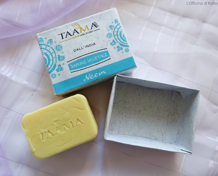 Oggi mi occuperò di un prodotto green diverso dal solito e molto singolare, una saponetta al Neem specifica per la cura del viso e indicata per le pelli soggette ad imperfezioni. Dopo aver terminato il detergente al fiore di loto So’Bio (clicca QUI per leggere la recensione) ero alla nostalgica ricerca di un prodotto solido, simile al mio amato sapone di Aleppo. Senza indugiare mi sono recata presso un negozio equosolidale della mia città che rivende prodotti alimentari e di bellezza, sicura di imbattermi in qualcosa che rispecchiasse i miei desideri. La gentilissima proprietaria ha accolto la mia richiesta e mi ha mostrato la linea cosmetica bio-ecologica artigianale Taama. Vista la confezione così semplice ma al contempo carina, la provenienza, l’azione dermopurificante ed il presso conveniente mi sono lanciata nell’acquisto. 🙂