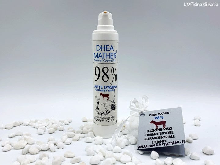 Ora arriviamo al punto clou dell’articolo, tempo fa, sono stata omaggiata proprio da Dhea Mather di un siero viso con latte d’asina al 98%. Ne sono stata felicissima e con entusiasmo l’ho testato per diverse settimane fino quasi a terminarlo. Un prodotto senza confronti, data l’elevata percentuale dell’ingrediente principe che, dopo la mungitura, viene immediatamente trasportato nel laboratorio dove tutto prende vita. Quindi non avvengono processi di liofilizzazione o altro e ciò permette di mantenere inalterate le caratteristiche intrinseche della materia prima.